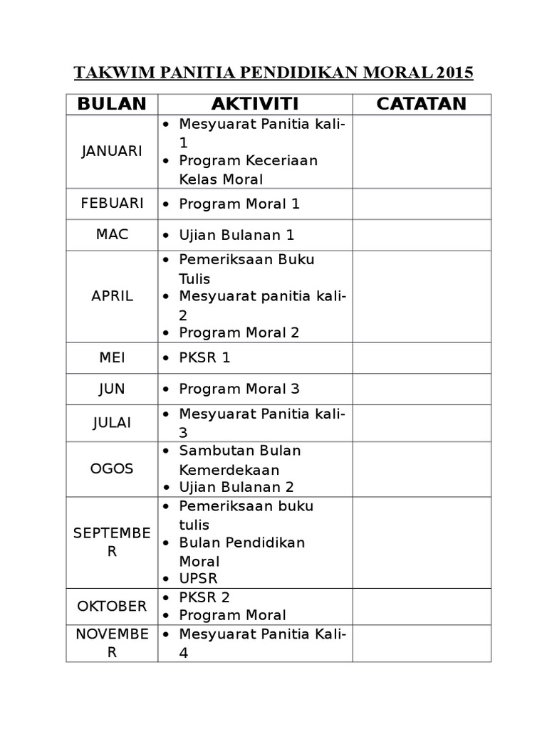 Takwim Panitia Pendidikan Moral 2015 Pdf